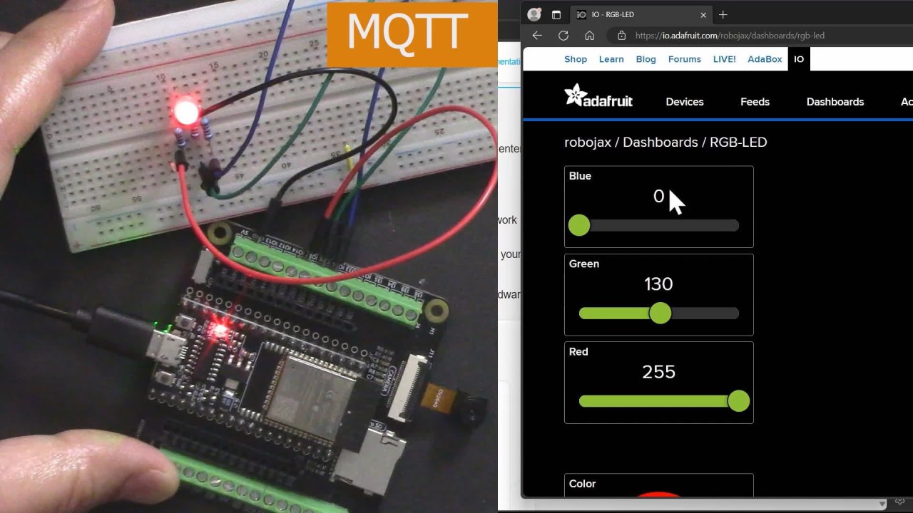 In this tutorial, we will learn how to control the color of an RGB LED using the ESP32 microcontroller over Wi-Fi, utilizing the MQTT protocol and Adafruit IO service. This setup allows you to change the color of the RGB LED from anywhere in the world, providing a practical application of IoT technology. We will also explore how to use sliders and a color picker to select the desired color.