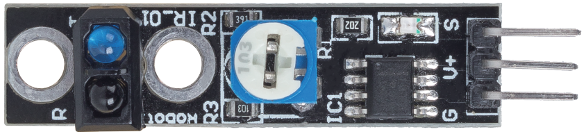 The line tracking module operates by emitting infrared light that reflects off the surface beneath it. A darker surface, like black, absorbs more light, resulting in a lower reflected intensity, while a lighter surface, like white, reflects more light, producing a higher intensity. This difference is processed by an operational amplifier to determine the state of the surface (black or white) and output a corresponding signal.