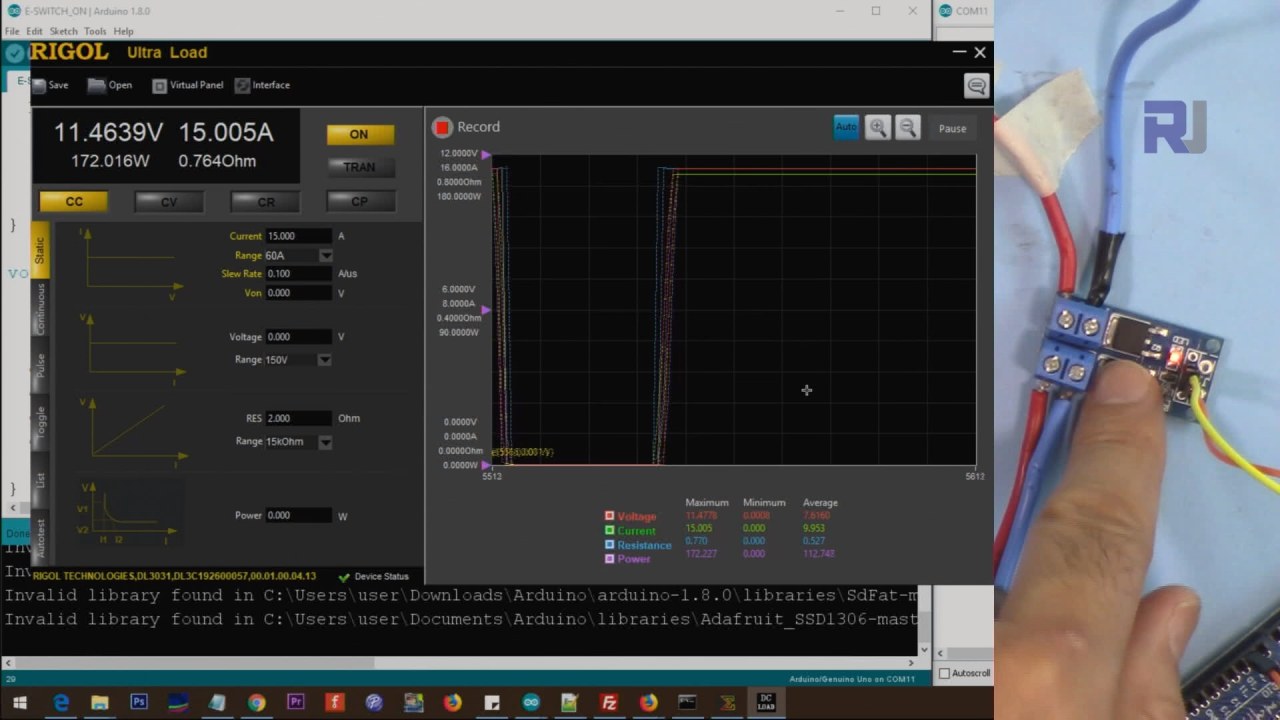 代码包含防止的逻辑mSpeed超出 0-255 范围(见视频:07:26)。为了测试更高的电流(5A、10A、15A、20A),简化版本的代码保持输出引脚为 HIGH,以维持恒定的开启状态(见视频:13:43)。