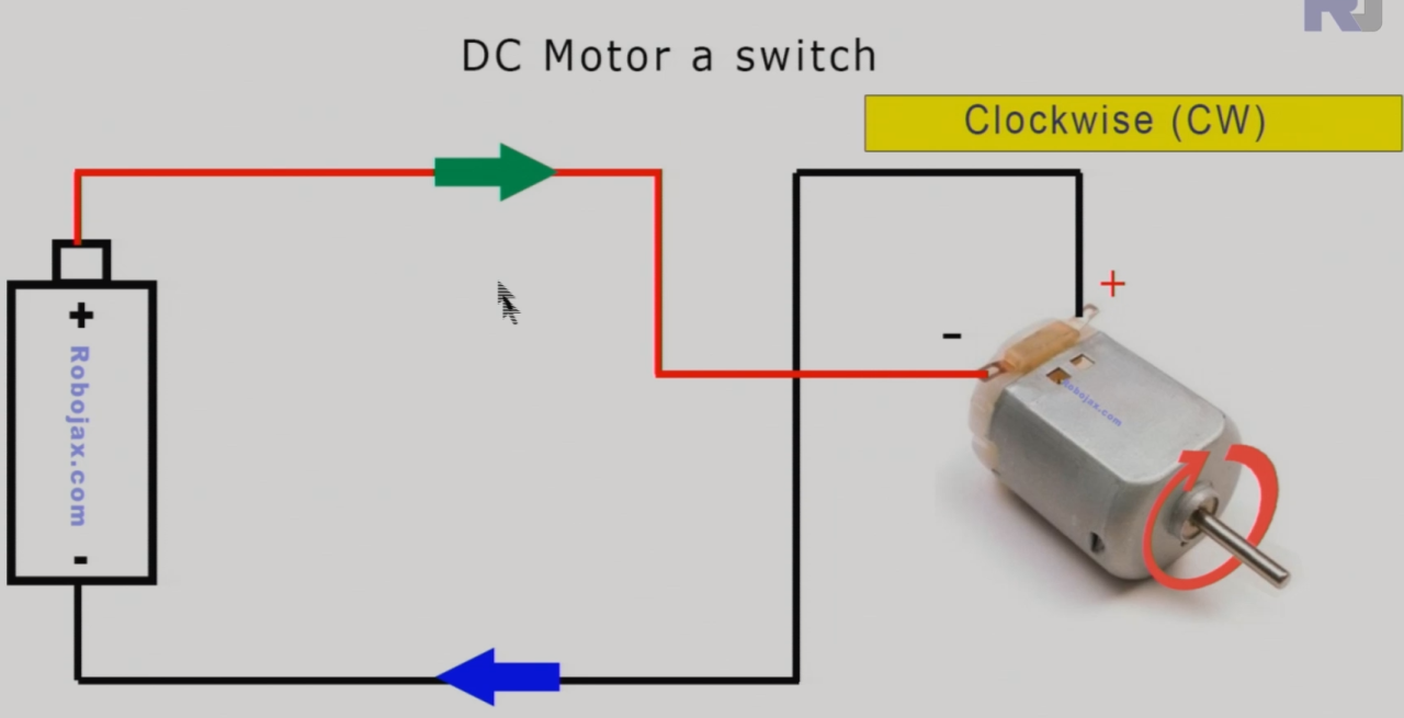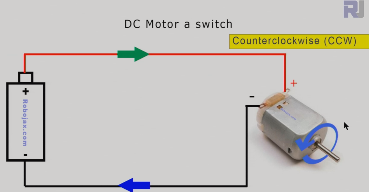 L'immagine sopra mostra di collegare i fili di un motore a una batteria, il motore ruota ad esempio in senso antiorario (CCW).