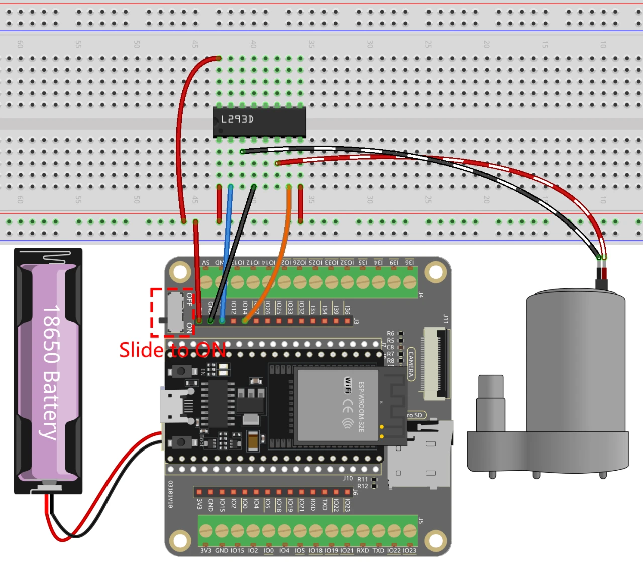 The L293D features two H-bridges, enabling it to control the direction and speed of the motor. Each H-bridge can drive a motor in either direction, making it suitable for applications where motor control is needed. In this case, we will only need to enable the pump to run in one direction.