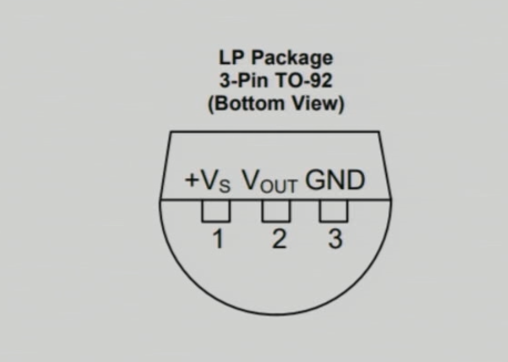 LM35温度传感器具有三个引脚:左侧引脚用于电源,中间引脚输出与温度对应的电压,右侧引脚用于接地。该传感器在4到30伏特的电压范围内工作,并提供每摄氏度10毫伏的输出。这种精度可在各种应用中实现准确的温度测量。