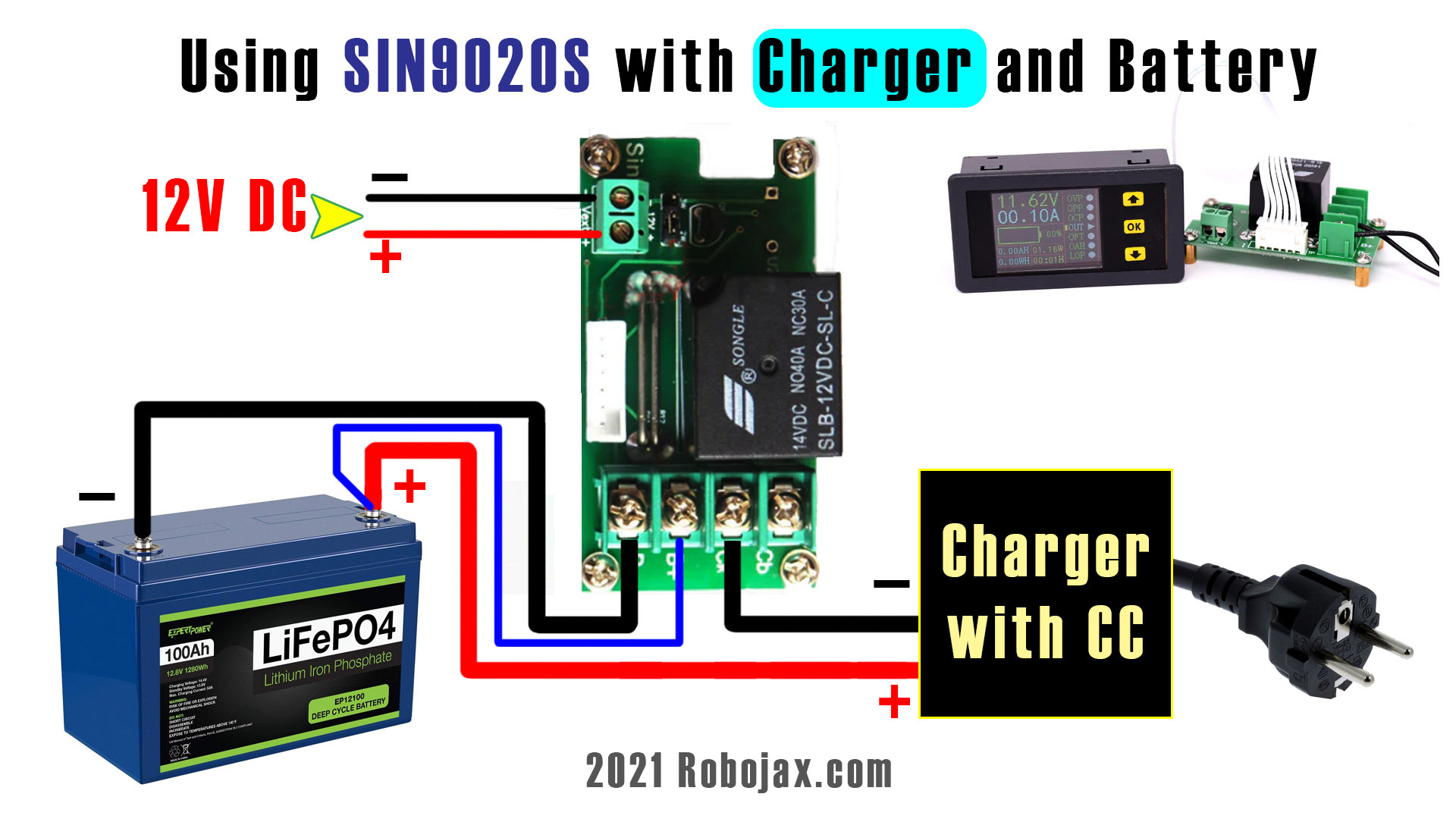 SIN9020S Battery Protection Relay module: Wiring diagram with charger