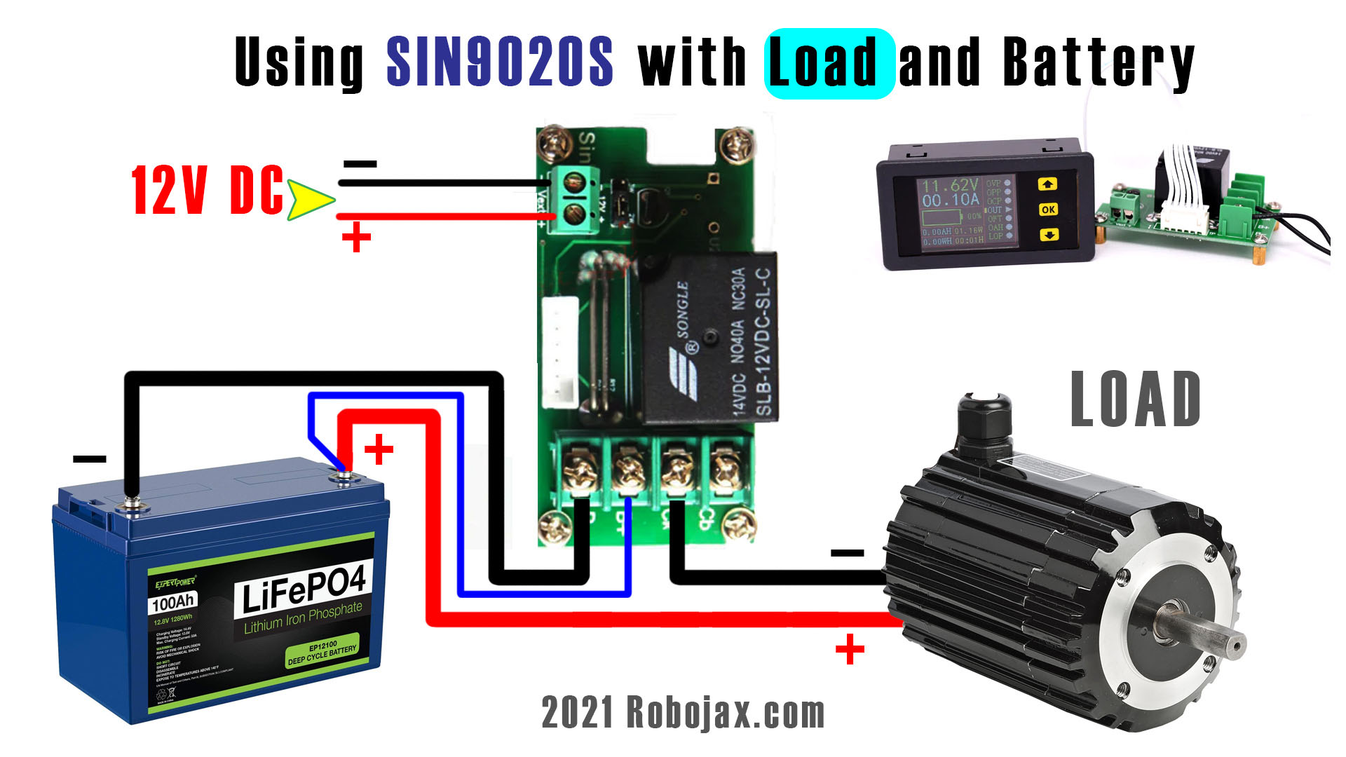 SIN9020S Battery Protection Relay module: Wiring diagram with load